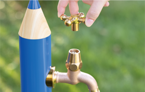 本物そっくりの色鉛筆の形をした水栓柱「いろえんぴつ」。園庭のシンボルマークとして活躍できます。さらに、開閉防止タイプを追加し蛇口の水の管理も可能になりました。