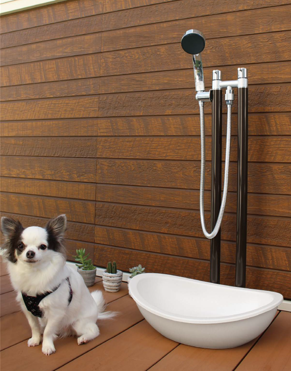 ジラーレ デュエ typeB(シャワーセット付)(ダークブラウン)・ジラーレ デュエ専用ウッドデッキ固定金具・プレーンパン エリプス(ホワイト)