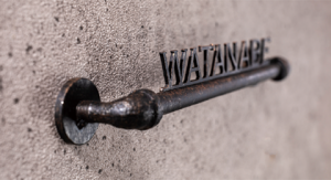 工業用配管のようなパイプをエイジング塗装で仕上げたミニマムな表札。