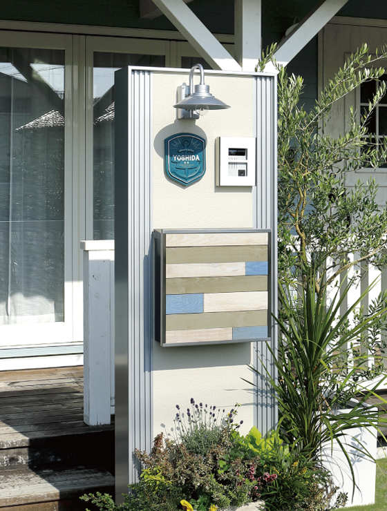 現場で穴あけ加工が可能なステンレスのフレームに3 種類のウォールカラーをご用意。いずれも住宅の外壁と馴染みの良いタイプで取付けアイテムとの相性も抜群です。
