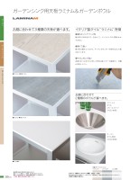 ガーデンシンク用天板ラミナム&ガーデンボウルステンレスボウル スモールタイプ(P087参照)ガーデンボウル無地(P092参照)■ラミナムK ●材質:タイル■ラミナムP ●材質:タイル■人工大理石お庭に合わせて3種類の天板が選べます。イタリア製タイル“ラミナム”特徴お庭に合わせて2種類のボウルが選べます。●優れたメンテナンス性吸水率0.06%なので、汚れにくく、メンテナンスの手間がかかりません。●薄くて強い耐久性に優れているので、キッチンカウンターや家具などにも使われています。●キズに対して強い表面の引っかきキズに対して非常に強く(モース強度6)、外観が劣化しにくい。人工大理石ラミナム(K)ラミナム(P)天板カラーバリエーション150● 実際の商品と写真は異なる場合があります。● オンリーワン価格には、消費税、施工費は含まれておりません。● LTは出荷日を表します。実際の納期は地域によって異なります。※沖縄・離島の送料は都度ご確認ください。 ガーデンガーデンシンクガーデンシンクデザイン・素材コーディネート情報 p022~025※室内では使用できません。表記の色見本はあくまでも商品のイメージ色となります。 印刷の都合上、実物とは異なる場合がありますのでご了承ください。