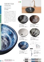 黄金焼黒天目海鼠白黒カラーバリエーションOnlyOne価格:¥32,000品番:HV4-TR14GHAMON信楽 (黄金焼) φ310●本体サイズ(mm):φ310×H120 ●重量(kg):5おうごんやきOnlyOne価格:¥32,000品番:HV4-TR14KHAMON信楽 (黒天目) φ310●本体サイズ(mm):φ310×H120 ●重量(kg):5くろてんもく●材質:陶器 ●仕上げ:釉薬仕上げ 25mm排水金具付き 陶器のため寸法には誤差が生じます。現場にて寸法を合わせてください。120φ31035φ40水栓の詳細はP416●重量(kg):0.95 ●材質:青銅・黄銅●仕上げ:メッキ仕上げOnlyOne価格:¥14,000立水栓 レトロン(メッキ)品番:HV4-T15J-RM4日日本信楽焼手洗鉢HAMON手洗器・洗面器(琉球ガラス/信楽焼)リビングデザイン・素材コーディネート情報 p054~056・070~071・416~417※室外では使用できません。表記の色見本はあくまでも商品のイメージ色となります。 印刷の都合上、実物とは異なる場合がありますのでご了承ください。排水口を中心に、幾重にも輪を描いて広がる波の模様をかたどった手洗鉢。中心の位置を少しずらすことで、醸し出される個性的な雰囲気も魅力です。モダンな黒と白のほかに、わび・さびの味わいを備えた「黄金焼(おうごんやき)」、信楽焼を代表する青い釉色が美しい「海鼠(なまこ)」、艶やかな光沢と斑模様が印象的な「黒天目(くろてんもく)」、5つの色からお選びください。OnlyOne価格:¥32,000品番:HV4-TR14WHAMON信楽 (白) φ310●本体サイズ(mm):φ310×H120 ●重量(kg):5OnlyOne価格:¥32,000品番:HV4-TR14NHAMON信楽 (海鼠) φ310●本体サイズ(mm):φ310×H120 ●重量(kg):5なまこOnlyOne価格:¥32,000品番:HV4-TR14BHAMON信楽 (黒) φ310●本体サイズ(mm):φ310×H120 ●重量(kg):5静寂の時を映す、波の模様。信楽焼手洗鉢HAMONOPTION● 実際の商品と写真は異なる場合があります。● オンリーワン価格には、消費税、施工費は含まれておりません。● LTは出荷日を表します。実際の納期は地域によって異なります。※沖縄・離島の送料は都度ご確認ください。 350