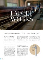 手洗混合水栓コローレP416FAUCETWORKS岐阜県山県市美山。清流長良川に注ぐ武儀川(むぎがわ)の流れに沿うように拓かれた、のどかな山あいの地域です。地場産業では陶磁器やアパレルが圧倒的な存在感を放つ岐阜県ですが、じつは水栓金具生産の一大拠点でもあり、最新の工業統計では給排水用バルブ・コックの出荷額シェアが約40%を占めて全国1位。その関連メーカーの多くが山県市に集積しています。なかでもここ美山地区は「水栓バルブ発祥の地」とされ、生産のメッカとなっています。ものづくりの歴史は終戦後の1947年、名古屋で鋳造業を営んでいた1人の男性が出身地である美山に水まわり製品の工場を開設し、水栓事業に乗り出したことにはじまります。それまで林業と養蚕業を主産業としていた山あいの集落は、安定した収入につながる新たな産業をおおいに歓迎。その後、上水道の普及や経済振興にともなう住宅着工数の増加を受けて業界全体が大きく発展し、その勢いに乗って独立・創業する者も増えていきました。こうして、たったひとつの町工場からスタートしたものづくりは、地域産業へと成長。美山は、日本を代表する「水栓バルブの産地」となったのです。半世紀以上にわたり磨き続けた確かな技術、清流のそばで育まれた水への思い。毎日の暮らしに欠かすことのできない水だからこそ、それを媒介する水栓金具は安全で安心できる品質であることはもちろん、使ってうれしいアイデアで心にも潤いを与えたい…、そんなコンセプトのもとに誕生したのがメイド・イン・山県の魅力的なアイテムたちです。キッチン、浴室、洗面化粧室、トイレなどにおいて、私たちがふだん何気なく使用している水栓金具。「蛇口をひねれば水が出る」という「あたりまえ」を支える、そんなものづくりの背景には、安全性と機能性を向上させるための職人たちの知恵と技、そして尽きることのない情熱がありました。たったひとつの町工場から、日本一の水栓バルブの町へ。使ってうれしいアイデアで、心にも潤いを与える商品づくり。「蛇口をひねれば水が出る」という「あたりまえ」を支える。402