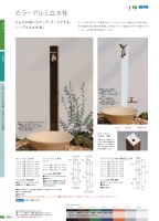 ブラックブラウングリーンネイビーオレンジシルバーホワイトカラーバリエーションOnlyOne価格:¥25,000●本体サイズ(mm):W70×H1,200●重量(kg):2●材質:[本体]アルミ、[蓋]樹脂、[配管]HI-VP(内部ウレタンフォーム充填)●仕上げ:粉体焼付塗装 蛇口別売り 凍結の恐れがある場合は必ず水抜栓を設置してください。(P113) 本体塗装部に養生テープ(粘着性テープ)を貼らないでください。塗装剥がれの原因となります。 蛇口別売りカラーアルミ立水栓品番:品番:品番:品番:品番:品番:品番:GM3-AL-100BGM3-AL-100CGM3-AL-100GGM3-AL-100NGM3-AL-100OGM3-AL-100SGM3-AL-100WOnlyOne価格:¥27,000●本体サイズ(mm):W70×H1,200●重量(kg):2品番:品番:品番:品番:品番:品番:品番:GM3-AL-105BGM3-AL-105CGM3-AL-105GGM3-AL-105NGM3-AL-105OGM3-AL-105SGM3-AL-105WOnlyOne価格:¥28,900●本体サイズ(mm):W70×H1,500●重量(kg):3カラーアルミ立水栓ロング品番:品番:品番:GM3-AL-150CGM3-AL-150GGM3-AL-150Wブラックブラウングリーンネイビーオレンジシルバーホワイトブラックブラウングリーンネイビーオレンジシルバーホワイトブラウングリーンホワイト■ カラーアルミ立水栓ロング(ブラウン)■ 蛇口:スタンダードフォーセット 真鍮 十字 GM3-F-201 P096 ■ 水受け:陶器の水鉢(ハニワ) KZ3-702 P082■ カラーアルミ立水栓 補助蛇口仕様(ホワイト) ■ 蛇口:アニマルフォーセット コマドリ GM3-F-102 P097 ■ ホース接続用蛇口 GM3-F-205 P096 ■ 水受け:陶器の水鉢(ハニワ) KZ3-702 P082カラーアルミ立水栓 補助蛇口仕様 蛇口別売り適応蛇口P094 P096~100 蛇口別売り 配管内部は硬質発泡ウレタン充填済み、50度程度の温水まで可能です。 AL-100AL-150G.L+900G.L+1200カラーアルミ立水栓 内部発泡ウレタンが充填されていますので、優れた断熱効果を発揮します。ただし凍結する恐れのある地域では水抜き栓などを設置してください。HI-VP管発泡ウレタンアルミシンプルなデザインと豊富なカラーバリエーションが魅力の立水栓。耐久性・保温性と使い勝手を重視し、本体はアルミ、配管はHI-VP(内部ウレタンフォーム充填)管を使用しています。どんなお庭にもコーディネートできる、シンプルな立水栓。カラーアルミ立水栓7日日本JWWA(日本水道協会)● 実際の商品と写真は異なる場合があります。● オンリーワン価格には、消費税、施工費は含まれておりません。● LTは出荷日を表します。実際の納期は地域によって異なります。※沖縄・離島の送料は都度ご確認ください。 ガーデン水栓柱デザイン・素材コーディネート情報 p094・096~099 表記の色見本はあくまでも商品のイメージ色となります。 印刷の都合上、実物とは異なる場合がありますのでご了承ください。カラーアルミ立水栓/木目アルミ立水栓048