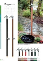 ガーデン水栓柱Drago(ドラーゴ)水栓柱(ドラーゴ)水の守護神である「龍」をイメージした、蛇口一体型水栓柱。スタイリッシュとクラシックが融合したレトロモダンなデザインが魅力です。こだわりは細部にも貫かれており、ホース接続水栓にも同デザインのハンドルを装備するなど、庭園の主役にふさわしい高級感あふれる仕上がりです。水の守護神「龍」をモチーフにした、高級感あふれる水栓柱。ナラ木目クルミ木目シルバーワインレッドブラックホワイトブリティッシュグリーンカラーバリエーション■ ドラーゴ(クルミ木目)■ 水栓パン「HAMON」(ブラック)※写真は湿潤状態で撮影しています。デザイン・素材コーディネート情報 p057・068~069・350表記の色見本はあくまでも商品のイメージ色となります。印刷の都合上、実物とは異なる場合がありますのでご了承ください。056