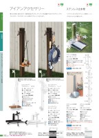 072ガーデンアイアンアクセサリー/ステンレス立水栓水栓柱OnlyOne価格:¥35,000●本体サイズ(mm):W100×D60×H680●重量(kg):4.2 ●材質:ステンレス・塩ビ●仕上げ:ヘアラインステンレス角水栓品番:GM3-SS-100OnlyOne価格:¥41,000●本体サイズ(mm):φ76.3×H900●重量(kg):3.5●材質:[本体]ステンレス、[配管]HI管●仕上げ:ヘアラインステンレス立水栓 900品番:GM3-SS900OnlyOne価格:¥49,000●本体サイズ(mm):φ76.3×H1,300●重量(kg):5●材質:[本体]ステンレス、[配管]HI管●仕上げ:ヘアラインステンレス立水栓 1300品番:GM3-SS1300ヘアライン仕上げのステンレス素材と、シンプルなフォルムが魅力です。■ 木目アルミ立水栓(タモ)P049■ スタンダードフォーセットI字(ブロンズ)P096■ 木目アルミ立水栓(タモ)P049■ スタンダードフォーセットI字(ブロンズ)P096OnlyOne価格:¥26,300●本体サイズ(mm):[本体]W55×D150×H700、[棚]W200×D105×H20●重量(kg):1●材質:[本体]アイアン、[棚]イペ材●仕上げ:[棚]無塗装ロートアイアンアクセサリー クロス品番:GM3-RI-CB黒●仕上げ:黒艶消し塗装品番:GM3-RI-CW白●仕上げ:白半艶塗装OnlyOne価格:¥26,300●本体サイズ(mm):[本体]W150×D120×H700●重量(kg):1●材質:[本体]アイアンロートアイアンアクセサリー リーフ品番:GM3-RI-RB黒●仕上げ:黒艶消し塗装品番:GM3-RI-RW白●仕上げ:白半艶塗装OnlyOne価格:¥24,300●本体サイズ(mm):[本体]W320×D150×H220●重量(kg):1 ●材質:[本体]アイアンロートアイアンホースハンガー品番:GM3-RI-HB黒●仕上げ:黒艶消し塗装品番:GM3-RI-HW白●仕上げ:白半艶塗装白白白黒■ガーデンパン「Split」(TYPE A)P081■スタンダードフォーセット十字(サテン)P096■ ステンレスボウル(水受け)P087■ スタンダードフォーセット十字(サテン)P096 収納部耐荷重:約1kg 収納部耐荷重:約1kg 収納部耐荷重:約1kg(ホース長さ15m程度) 配管内部は硬質発泡ウレタン充填済み、50度程度の温水まで可能です。 本体のみの価格、蛇口・ステンレスボウルは別途お買い求めください。 本体のみの価格、蛇口・ガーデンパンは別途お買い求めください。適応蛇口P094.P096~100適応蛇口P094.P096~100 凍結の恐れがある場合は必ず水抜栓を設置してください。(P113)カラー3日日本4日日本カラーバリエーション黒白シルバー6805523020510060アイアンアクセサリー壁や立水栓に取り付けて、場所を取らずにガーデングッズを収納できるアクセサリーです。クロスやリーフのデザインが、水場のアクセントになります。● 実際の商品と写真は異なる場合があります。● オンリーワン価格には、消費税、施工費は含まれておりません。● LTは出荷日を表します。実際の納期は地域によって異なります。※沖縄・離島の送料は都度ご確認ください。 デザイン・素材コーディネート情報p073(右)・086~087・094~108 表記の色見本はあくまでも商品のイメージ色となります。印刷の都合上、実物とは異なる場合がありますのでご了承ください。デザイン・素材コーディネート情報 p048~051表記の色見本はあくまでも商品のイメージ色となります。印刷の都合上、実物とは異なる場合がありますのでご了承ください。ステンレス立水栓