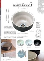 はそのままに、ひとつひとつに縦・横模様を施した「白土(シロツチ)」「黒土(クロツチ)」。北欧テイストを感じさせる表現に作家のこだわりが光ります。万古焼の里・三重県四日市で陶器工場を営む陶芸作家による、ハンドメイド手洗器のシリーズ。量産型の小さな手洗器をベースに、生地を掻き落としたり釉薬の表情に手を加え、特徴づけています。手触と景色のあるラスター釉の表面と、柔らかな白濁釉の内面のコントラストが印象的な「雲」。白色つや消釉にライラック色の細線が映える「鋼(ハガネ)」。磁器土・黒土の素材感ハンドメイドの技が冴える、北欧テイストの手洗器。●本体サイズ(mm):1.5L 最大径210×H120●重量(kg):2●材質:陶器●排水金具・トラップは25mm使用OnlyOne価格:¥16,500手洗器 ピエニベッセル型補排水金具別売り品番:IB4-E415011雲(クモ)φ210120655510647.547.557.557.5φ40 風合いに個体差があります。注カウンターの詳細はP018~019品番:IB4-E415013白土(シロツチ)品番:IB4-E415014黒土(クロツチ)品番:IB4-E415012鋼(ハガネ)水栓・給排水部品の詳細は P061WATER BASIN6手洗鉢手洗器/ピエニ水まわりNEW手洗器・洗面器手洗器/ピエニ●実際の商品と写真は異なる場合があります。●オンリ-ワン価格には、消費税、施工費、送料は含まれておりません。058※こちらの手洗器は万古焼です。