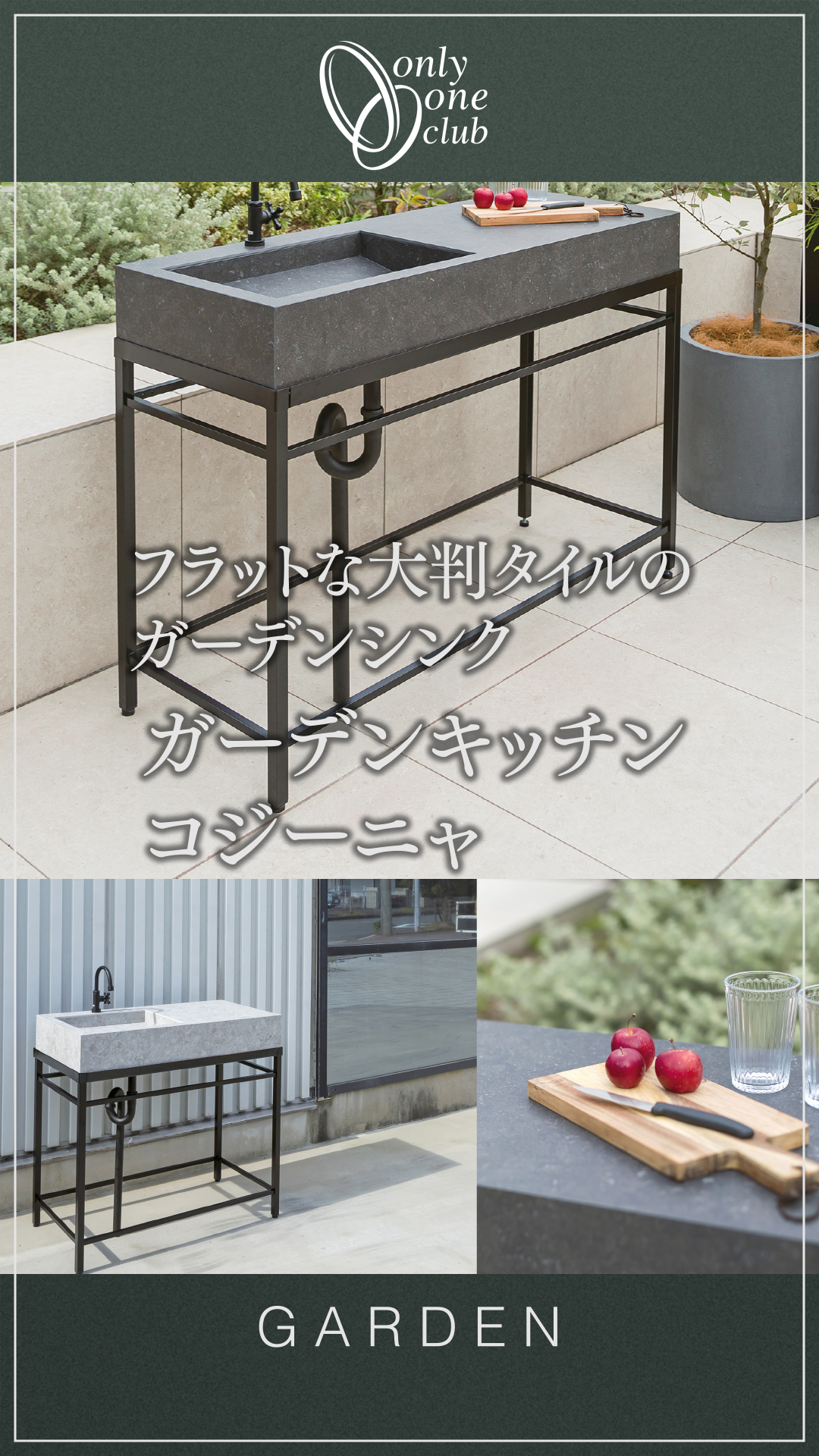 【ガーデンキッチン】庭にさらなる上質をもたらす、フラットな大判タイルのガーデンシンク「コジーニャ」