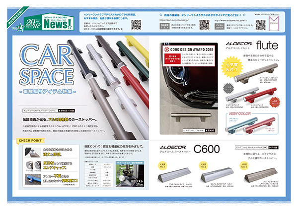 2020.11.5 オンリーワン NEWS 「オンリーワンNEWS Vol.14」を発行致します。 「オンリーワンNEWS Vol.14」を発行致しました。第14弾は、「車庫周りアイテム」の特集です。(印刷の際は、A3サイズの両面(短辺綴じ)印刷をお勧めします。) 画像をクリックするとpdfデータが表示されます。