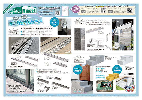 2020.12.5 オンリーワン NEWS 「オンリーワンNEWS Vol.16」を発行致します。 「オンリーワンNEWS Vol.16」を発行致しました。第16弾は、「おすすめ! 資材特集!!」の特集です。(印刷の際は、A3サイズの両面(短辺綴じ)印刷をお勧めします。) 画像をクリックするとpdfデータが表示されます。