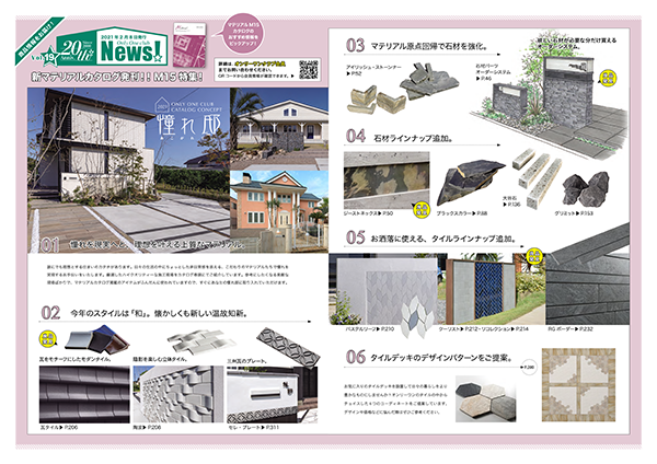 2021.2.8 オンリーワン NEWS 「オンリーワンNEWS Vol.19」を発行致します。 「オンリーワンNEWS Vol.19」を発行致しました。第19弾は、「新カタログマテリアルカタログM15」の特集です。(印刷の際は、A3サイズの両面(短辺綴じ)印刷をお勧めします。) 画像をクリックするとpdfデータが表示されます。