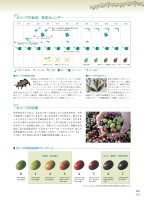 1月2月3月4月5月6月7月8月9月10月11月12月植えつけ、植え替えは真夏と真冬以外は根をいじらなければ通年OK3月~4月のうち1回強剪定は1月~3月の休眠期に乾いたら水はたっぷりと発芽(4/上)実の充実収穫(9/末~12/末)開花(5/中~6/上)水やり/地植え肥料水やり/コンテナ植えつけ・植え替えゾウムシ対策強剪定※スペインのハエンにある研究所が提案する果実の成熟過程8段階表示による。101P01秋が深まるにつれて、丸まると育った実はしだいに赤みを帯び、やがて黒紫色へと熟していきます。重いほど実をつけた枝から、傷つけないようにひとつひとつ手で摘み取ります。オリーブの実は、そのままかじると飛び上がるほど渋いのですが、上手に渋を抜くとかすかな渋みがオイリーな滋味に加わって、美味しくいただけます。収穫する時期は、青い実を塩水漬け(下記カラースケール1~3)にするか、熟した実を塩漬けにするか、オイルを搾ってみたい(下記カラースケール6~7)のか、その目的に合わせて収穫の時期を判断しましょう。オリーブの栽培/育成カレンダーオリーブの収穫●オリーブの病害虫対策■ オリーブの実の熟成度カラースケール●オリーブからのサイン病害虫には比較的強いオリーブの木ですが、もっとも手強い害虫はオリーブアナアキゾウムシ。気づかずに放っておくと、木を内部から食害していき、大きく育ったオリーブでも枯らしてしてしまいます。オガクズ状の木屑を株元に発見したら、マイナスドライバーなどで木肌の荒れた部分をほじり、幼虫や成虫を見つけたら捕殺してください。薬剤散布という手もありますが、家庭でオリーブを楽しむ場合は、農薬に頼らずに、ピンセットなどで捕殺しましょう。他にもテッポウムシやコガネムシなどの害虫も見つけたら捕殺しましょう。葉色が先端から半分くらいまで黄色くなったら、追肥が必要なサイン。植物の生育に欠かせない鉄・マンガン・ホウ素・マグネシウム・カルシウムなどの微量要素が足りない証拠なので、追肥で栄養補給をすることが必要です。日頃からオリーブの健康状態をよく観察しておきましょう。新漬け・塩水漬けオイル・塩漬け・甘味料漬け01234567外果皮が濃緑または暗緑色外果皮が黄色または黄緑色外果皮が赤みを帯びた黄緑色外果皮が赤みを帯びた、あるいは淡い紫色外果皮がやや黒色で、果肉はまだ完全な緑色外果皮がやや黒色で、果肉は半分まで紫色外果皮が黒色で、果肉もほぼ核まで紫色外果皮も果肉も完全に黒色