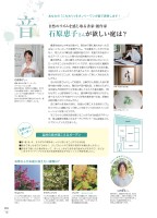 16P01音音音音音音音音音音音音音あなたの「こだわり」をオンリーワンが庭で表現します!自然のリズムを感じ取る書家・創作家石原恵子さんが欲しい庭は? 書道を始めた小学生の頃から、現在まで筆に触れなかった日はないくらいという石原恵子さん。今は書家としてだけではなく、同じように筆を使う磁器の絵付けや、和紙での作品作りなどアーティストとして様々な作品を創作されています。 書の世界は、一気に書き上げるために集中力をいかにコントロールすることが大切なポイントですが、絵付けは逆に繊細な彩色を入れていくため、持続する集中力が要求されるお仕事。「創作のチャンネルがそれぞれ違うようで、個々の仕事を切り替えながら行うことが、気分転換にもなって楽しく向き合えるんです。」 そんな石原さんにとってお庭は、仕事がひと段落した時に緊張や疲れを解くために、陽の光や雨や風の音、小鳥のさえずり、虫の音など自然が作り出す音に癒してもらう大事な場所。「何もせずじっと庭を眺めていると、夏は蝉の抜け殻をカチカチと食べるスズメバチの音やナメクジが落ち葉を食べる音、野鳥の会話が聞こえたりするんです。」 逆に集中力を高める時も、お庭から聞こえる自然のリズムがとてもいい振動となって新しい作品づくりのためのインスピレーションを頂くそうです。 そこでさらに自然の音を感じることのできるお庭のデザインを、里山風景を得意とするガーデンデザイナーの山田亜生さんにプランしていただきました。石原恵子さん書家・絵付け作家・アーティスト「アトリエ・リジュ」主宰創作の原点は「自然からの鼓動」、そのかすかな息遣いを感じ、作品に表現する。レストランや店舗の装飾をトータルにプラン・制作を行う。絵付け作品は毎年百貨店で行われる、個展で多くのファンを魅了している。■春・夏・秋・冬、それぞれの季節をしっかり感じることができるお庭■眺めて楽しめるだけではなく、少しでもいいので果実や野菜の収穫も楽しみたい。■深夜まで続いた仕事が終わって、ほっとしながら見る夜の庭が大好きなので、ほどよい光でライトアップされた夜のお庭を眺めながらゆっくりと時間を過したい。自然の音が聞こえるガーデン石原さんのオーダー料亭・和室の「掛け軸」絵付け作品(プレート)デザインを考えてくれたのは…gardenatelierentr-ancelivingkitchen山田亜あおい生さん京都生まれ。造園会社を独立後、地元の工務店と提携し、京都から滋賀エリアを中心に外回りデザイン設計を受け持つ。里山のような風景を得意とする。※詳しいご紹介はP.172で。石原さんがお庭に加えたい植物は?サルスベリドウダンツツジツリバナ ▶ P.56,121,160ミソハギ科の落葉中高木。別名「百日紅」(ヒャクジツコウ)。7~10月にかけて枝の付け根から先端に向かって花が咲く。ツツジ科の落葉低木。春には白色で釣り鐘のような5㎜ほどの小さな花が咲く。秋には葉がまっ赤に紅葉し、季節ごとに楽しめる樹木。ニシキギ科の落葉低木で、初夏には白い花が咲き、秋には裂けると真っ赤な綺麗な実がなります。ツリバナは花よりも実に観賞価値のある植物。