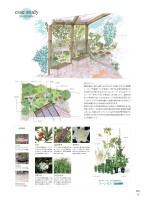 コムラサキサザンカクチナシビワリュウノヒゲサザンカツバキ科の常緑広葉樹。小高木で剪定によって低木として垣根などに使われる。花期が長く冬の蜜源になります。コムラサキクマツヅラ科の落葉低木植物。6月~7月に薄紫色の花を多数付け、果実は綺麗な紫色に熟します。クチナシアカネ科の常緑低木植物。6月~7月頃にとても良い香りの白い花を咲かせ、冬に黄赤色の実をつけます。リュウノヒゲキジカクシ科の常緑多年草。別名「ジャノヒゲ」。高さ10cmほどの細かい葉が多数出るので、虫の栖にもなります。ビワバラ科の常緑高木。11月~2月に白い花を咲かせ蜜を出すので、冬の数少ない蜜源に鳥が集まりやすい。17P01居間の掃出し窓から庭に出られるように石張りのテラスを配置し、パーゴラ屋根とベンチを設け、雨天でも雨音や風を感じるため庭に出て過ごせるようにしました。パーゴラにはバードフィーダーを吊り下げて小鳥を近くまで誘ったり、風鈴を吊るして音を楽しむこともできます。ビワの木の前の石張りオブジェはバードバスや水鉢を置いてお庭の眺めを楽しむほかビワの実を収穫するときの足場にも利用できます。飛び石に用いた石灰岩は雨の日に水を吸って表情が変化するのが楽しめます。大小様々な水鉢を庭の高さが異なる場所に配置しました。お庭に出てリラックスしながら五感が研ぎ澄まされた石原さんの耳にそれぞれの水鉢の雨音が音楽を奏でてくれることを期待しつつ…ビワコムラサキサルスベリドウダンツツジクチナシツリバナクチナシサザンカcase study[ケーススタディ]音をモチーフに(主に野鳥を呼ぶ)「トーン ビワ」▶ P.69設計のポイントG0-3型テラコッタフィーダー[ガーデンリビングカタログ掲載]大型水鉢L[ガーデンリビングカタログ掲載]琉球石灰岩 乱形[マテリアルカタログ掲載]使用商材