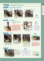 185P01植え込み位置を決めて穴を掘る植え込み位置を決めて穴を掘る木の準備をする木の準備をする❶❶ 植え込む場所を決め、シャベルで植え込む場所を決め、シャベルで穴を掘る。穴を掘る。❶❶ 決めた向きのまま木を穴におろ決めた向きのまま木を穴におろし、根鉢の上面と地面が同じ高し、根鉢の上面と地面が同じ高さになるよう、用土を加えて調さになるよう、用土を加えて調節する。節する。❷❷ 掘り上げた土と腐葉土を混ぜた掘り上げた土と腐葉土を混ぜた用土で穴を埋める。用土で穴を埋める。❸❸ 水を溜めるための土手を作る水を溜めるための土手を作る。。木の場合は植え込み直後に十分木の場合は植え込み直後に十分に根まで届く水やりをする必要に根まで届く水やりをする必要があります。シャベルで株元のがあります。シャベルで株元のまわりに土手を作り、中に水をまわりに土手を作り、中に水を溜められるようにします。溜められるようにします。❶❶ 穴の近くに木を運んでくる。根鉢を穴の近くに木を運んでくる。根鉢を包んだ布はほどかず、そのまま植包んだ布はほどかず、そのまま植え込みます。え込みます。❷❷ 穴に腐葉土を少し入れて底の土と穴に腐葉土を少し入れて底の土と混ぜる。混ぜる。❷❷ 枝を束ねていたひもをほどき、枯枝を束ねていたひもをほどき、枯れている枝や葉があったら、剪定れている枝や葉があったら、剪定バサミでカットします。バサミでカットします。❸❸ 掘り上げた土にも腐葉土を混ぜて掘り上げた土にも腐葉土を混ぜておく。おく。根鉢を包んでいる布をほどいてしまうと、土が崩れて根を傷めてしまう危険があります。また、崩さずに植え込めても、水やりすると土が崩れてしまいます。根と土が密着していることがその後の発根にとって何より大切。布もひもも自然素材なので、いずれは土中で腐り、それが木の養分となるので、布をまいたまま植え付けても大丈夫です。どうして根鉢は布をほどかず植える?根鉢はほどかないで!プロセス1プロセス1プロセス2プロセス2植え込み植え込み水やり水やり株元の穴にホースで株元の穴にホースでたっぷりと水を注ぐたっぷりと水を注ぐ。。土手が崩れないように株元に土手が崩れないように株元にホースの先を近づけて水を注ホースの先を近づけて水を注ぎます。土手の高さぎりぎりぎます。土手の高さぎりぎりくらいまで水が溜まるよう、くらいまで水が溜まるよう、たっぷりと注ぎ、根鉢のまわりたっぷりと注ぎ、根鉢のまわりに隙間ができないようにシャに隙間ができないようにシャベルなどで突き込みます。ベルなどで突き込みます。高さのある木から植え込む穴の深さは根鉢の1.5倍が目安。植え込む向きを決めよう!根鉢の上面と土面の高さを揃えないとその後の生長に影響が出る!Point木は見る方向によって表情が異な木は見る方向によって表情が異なります。前後左右から眺めてみて、ります。前後左右から眺めてみて、いちばん美しく見える向きを正面いちばん美しく見える向きを正面に決めます。門まわりに植え込むに決めます。門まわりに植え込む場合は、通りから見た姿を正面と場合は、通りから見た姿を正面とします。また枝がどちらの方向します。また枝がどちらの方向に流れているかもチェックし、スに流れているかもチェックし、スペースのあいている方向に枝の流ペースのあいている方向に枝の流れをもっていくようにします。れをもっていくようにします。木の場合、植え込み時にたっぷりと水やりする木の場合、植え込み時にたっぷりと水やりするのは、水分補給のほかにもうひとつ、大切な目のは、水分補給のほかにもうひとつ、大切な目的があります。水が浸透する力で用土が締ま的があります。水が浸透する力で用土が締まることで、高さのある木を安定させることがでることで、高さのある木を安定させることができます。これを“水極め”と言います。水やりきます。これを“水極め”と言います。水やり時に土手を作ると水がたまるスペース(ウォー時に土手を作ると水がたまるスペース(ウォータースペース)ができ、根鉢にしっかり水分補タースペース)ができ、根鉢にしっかり水分補給できます。ひと手間をかけることで、植え込給できます。ひと手間をかけることで、植え込んだ木が倒れにくくなり、かつ確実な水やりがんだ木が倒れにくくなり、かつ確実な水やりができます。できます。地面より深く植えると、根のはりが悪くなりやすいので注意。逆に地面から根鉢が出過ぎていると、根のはりはよくなりますが、乾燥しやすく、頻繁な水やりが必要になって手間がかかります。もし高さが揃っていないとシャベルを写真のように置いて、実際に高さシャベルを写真のように置いて、実際に高さが揃っているかどうか確認するのがおすすめ。が揃っているかどうか確認するのがおすすめ。手順 ①PointPoint腐葉土は掘り上げた腐葉土は掘り上げた土の2~3割。土の2~3