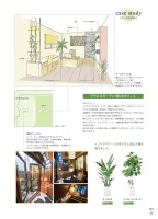 室内菜園オーガスタ(大鉢)ウンベラータスプラウトの菜園棚壁面緑化space-Aspace-Bterrace& gardenoffice 23P01case study[ケーススタディ]インドアグリーンの中でも人気の2種を選びました。テラス&ガーデン「憩」のオフィスエクステリアからインテリア、暮らしを豊かにデザインするには、ステンドグラスや木漏れ陽、天窓を打つ雨音が欠かせません。落葉樹や一年草が窓を囲う秘密の庭が外周するノスタルジックモダンなオフィスは、緩やかな時が流れる憩いの空間です。癒しのワーク・スタジオにするために、観葉植物だけではなく、ツル性植物やスプラウト、ウォールグリーンと、多様な緑に囲まれる仕事場に生まれ変わる予定。体に良い材料、心が悦ぶ、暮らしの環境づくりのアイディアは、ここから湧いてきます。オーガスタフィカス ウンベラータ▶ P.158▶ P.156接客スペース(A)リノベーションが完成したテラス&ガーデン。周りをお庭がぐるりと囲み、小鳥や小動物、季節の植物を窓から眺めることができます。インテリアもぐっと落ち着いた雰囲気で、お客様ともゆったりとお話ができます。ワークスペース(B)現在リフォーム中のワークスペースの完成イメージ図。様々なインドアグリーンを配置し、快適なオフィスにする予定です。1階オフィス部分設計のポイント
