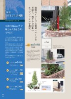 アガパンサスアベリアホップブッシュ・プルプレアフッキソウヒューケラ(銅葉)ニューサイラン(銅葉)Beforeプランツ独自の樹種を組み合わせ、施工場所やお施主様のご要望にも素早くお応えできる植栽セットアップです。植栽直後は少し寂しい感じがしますが、年月が経った時に素敵なお庭になるよう、セットアップされています。今回は実際に新たなお住まいの2邸様と昨年取材させて頂いたM様邸とS様邸のその後を取材させて頂きました。経年後の植物がどんな表情になっているかご覧ください。case011290P01年月を重ねることで魅力ある素敵な庭になります。Grow Up Image 1-2-3-4植栽1ヶ月目T様邸case01植栽1ヶ月目T様邸【使用セットアッププランツ】シック ホップブッシュ▶ P.44case02植栽4ヶ月目N様邸【使用セットアッププランツ】ブリーゼ シマトネリコイージー エメラルド▶ P.35▶ P.87case03植栽2年目M様邸【使用セットアッププランツ】シック アロニア▶ P.37case04植栽2年目S様邸【使用セットアッププランツ】シェード ハイノキ▶ P.84建物のイメージと植栽スペースを考慮し、爽やかな印象のホップブッシュを選定。コーナーに設けられたレンガ積み花壇の中にある、枕木を囲むように植物を配しました。経年と共にホップブッシュが生長し、枕木と共にご近所のランドマークとして親しまれるでしょう。5月ころには花が咲き、葉色も変化して爽やかな雰囲気を楽しむことができます。1.植栽後のセットアッププランツ。2.アガパンサスは初夏に美しい花を咲かせます。1ヶ月目After植栽SET-UP実例集使用セットアッププランツシック ホップブッシュ▶ P.44