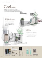 直線を生かしたシンプルモダンなアイテムのほか、ガラス素材で気品も加わったアイテムを取りそろえました。シンプルさだけでなく、住まいの外観に確かな存在感を与えます。GraceSERIES透明感が魅力のガラスと、力強い存在感の金属装飾を組み合わせたファサードアイテムシリーズ。壁付けタイプや自立タイプ、スリットフェンスタイプなどをそろえ、それぞれに多彩なガラスパネルパターンをラインナップしています。Simple FrameCOORDINATE ITEMCOORDINATE ITEMSERIES壁と組み合わせファザードに立体感を演出するシンプルモダンを追求したフレームユニットのシリーズ。機能部を有したファンクションユニットの他、壁面にアクセントをそえるフロントライトユニット、さらに散水用水栓ユニットをそろえています。グレース コーナー type 04P.52グレース スリット type 04P.55口金ポストモデルノR ファイン type 01P.284LEDスポットライトP.227tasteCool照明 シンライトP.292ウォールアクセサリーフェンスtype 01P.132シンプルフレーム ファンクションユニット type 01P.186切り文字表札E16カタログ参照ポストヴァリオネオ ラインP.270手摺シンライン MtypeP.118STYLE-M+だからできるトータルコーディネート42S0442