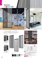 ■バーチカル type 01-1 スクリーン 納まり品番OnlyOne価格サイズ(mm)重量(kg)アンカータイプNA5-PV11A□□A¥ 189,000 W910×H2,500×D96 20.0NA5-PV11ABCA¥ 203,000突っ張りタイプNA5-PV11T□□A¥ 174,000 W901×H2,500×D6020.0NA5-PV11TBCA¥ 188,000埋め込みタイプNA5-PV11U□□A¥ 159,000 W901×H2,497+埋め込み300×D6020.0NA5-PV11UBCA¥ 173,000アルミ 仕上:焼付塗装アンカータイプ:スクリーンの上部はビス固定。下部はアンカー固定するタイプです。突っ張りタイプ:スクリーン本体の上部下部共にビスやアンカー等を使用せず突っ張って固定するタイプです。埋め込みタイプ:柱を300mm埋設し、固定するタイプです。W300~W1,200、H1,500~H2,500までのサイズ範囲で製作可能。詳細価格についてはお問い合わせください。特注サイズ、仕様によっては、価格やLTが異なる場合があります。詳しくはお問い合わせください。本製品の格子に力を加えると揺れることがあります。予めご了承ください。品番の□□には格子の商品色記号が入ります。NA5-PV11TKCANA5-PV11TBCANA5-PV11TASAサイズオーダー可納まりタイプについてはP.73をご参照ください。NA5-PV11TBCANA5-PV11TKCABRAD / fotoliatsuneomp / fotolianancy10 / fotolia/バイカラー 仕上:アルマイト処理BRAD / fotoliaNA5-PV11TASAたて格子のピッチと取り付き角度に工夫をこらし、見る角度によってスクリーン越しの見え方が変わる、ユニークなスクリーンです。間仕切りながらも、視線の位置で見え隠れする、新感覚の透過性。毎日の暮らしのなかに、今日は違うシーンを見つけてください。正面から見た場合斜め45°から見た場合毎日の風景に、違うシーンが見えてくる。格子スクリーン断面スクリーン断面格子BMブラックマットBCバイカラーASアルマイトシルバーColor本体格子KCアルマイトKC質感についてはP.324-NAをご参照ください。ASKC商品検索サイト参照日本Verticalバーチカルサイズオーダー可5日新商品スクリーンバーチカル60S0460